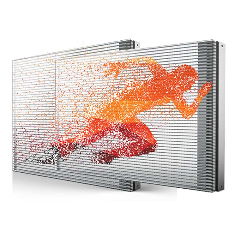 林森光電高清正發光透明LED顯示屏-P3.91系列采用了精簡化箱體設計,顯示屏屏體重量輕,無需改變建筑結構,直接粘貼與玻璃幕墻上,耗電功率不大,無需空調散熱和制冷,因此較為節能,而且保證了玻璃幕墻的通透效果,無論從室內還是室外觀看,都能一覽無余。